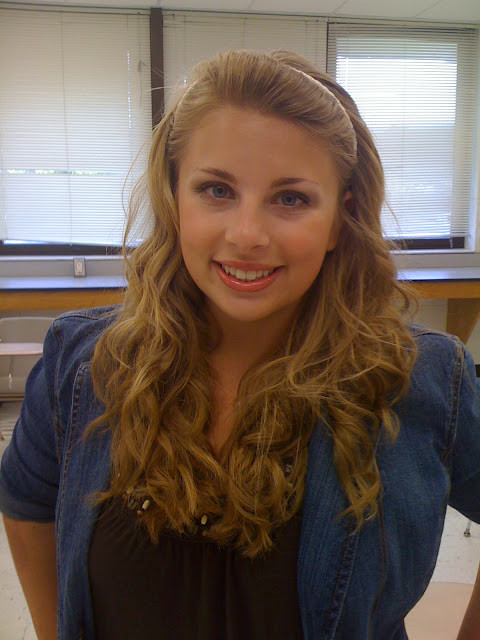 Awe you look so pretty!! I love that skirt! The pattern is fantastic and the color is beautiful. I love your hair...as usual! You are just too cute! kiah